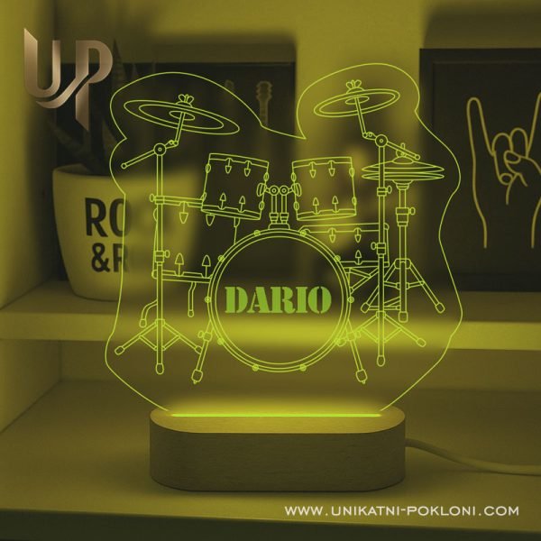 Ovaj poklon za bubnjara je posebno izrađena LED lampa koja se može personalizirati i s drugim tekstom.