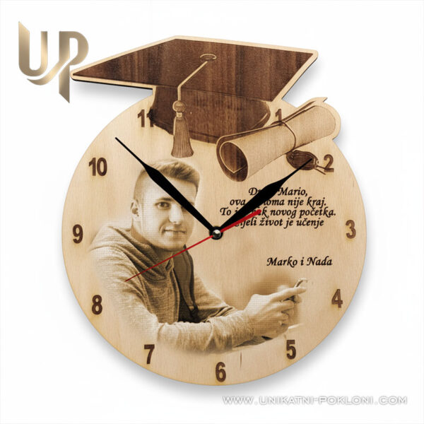 Pošaljite nam sliku i tekst sa svojim željama i mislima koje želite uputiti vama dragoj osobi, a mi ćemo sve to ukomponirati na sat zajedno sa diplomskom kapicom koja je prigodna za ovaj događaj.
